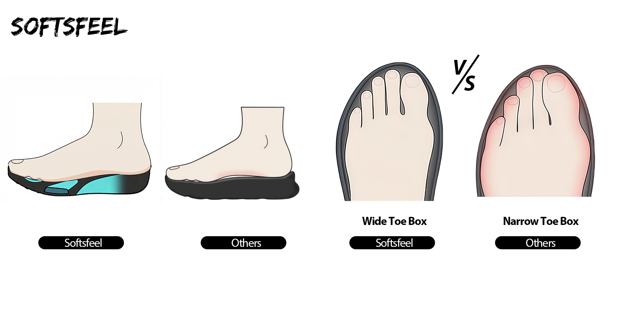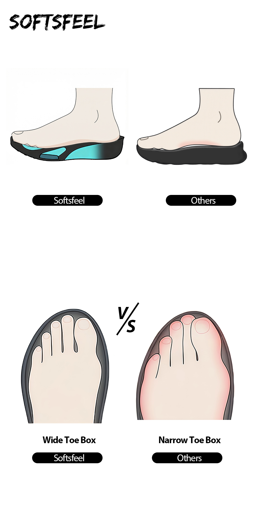 - Wide-Foot Friendly: Spacious toe box protects sensitive toes; say goodbye to cramped feet.