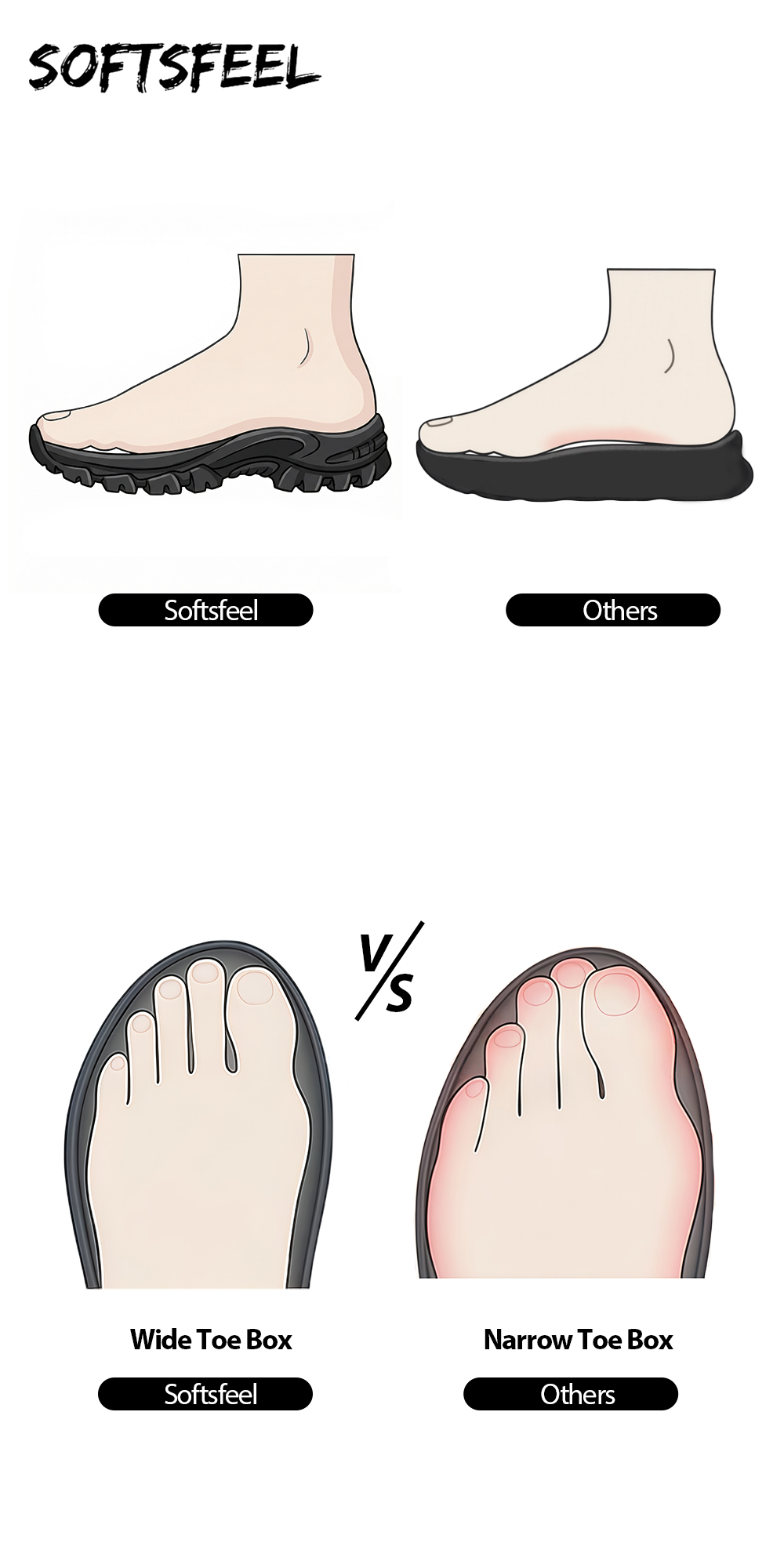 Extra Width & High Insteps: Comfort fit for wide feet, bunions, arthritis, and hammer toes.
