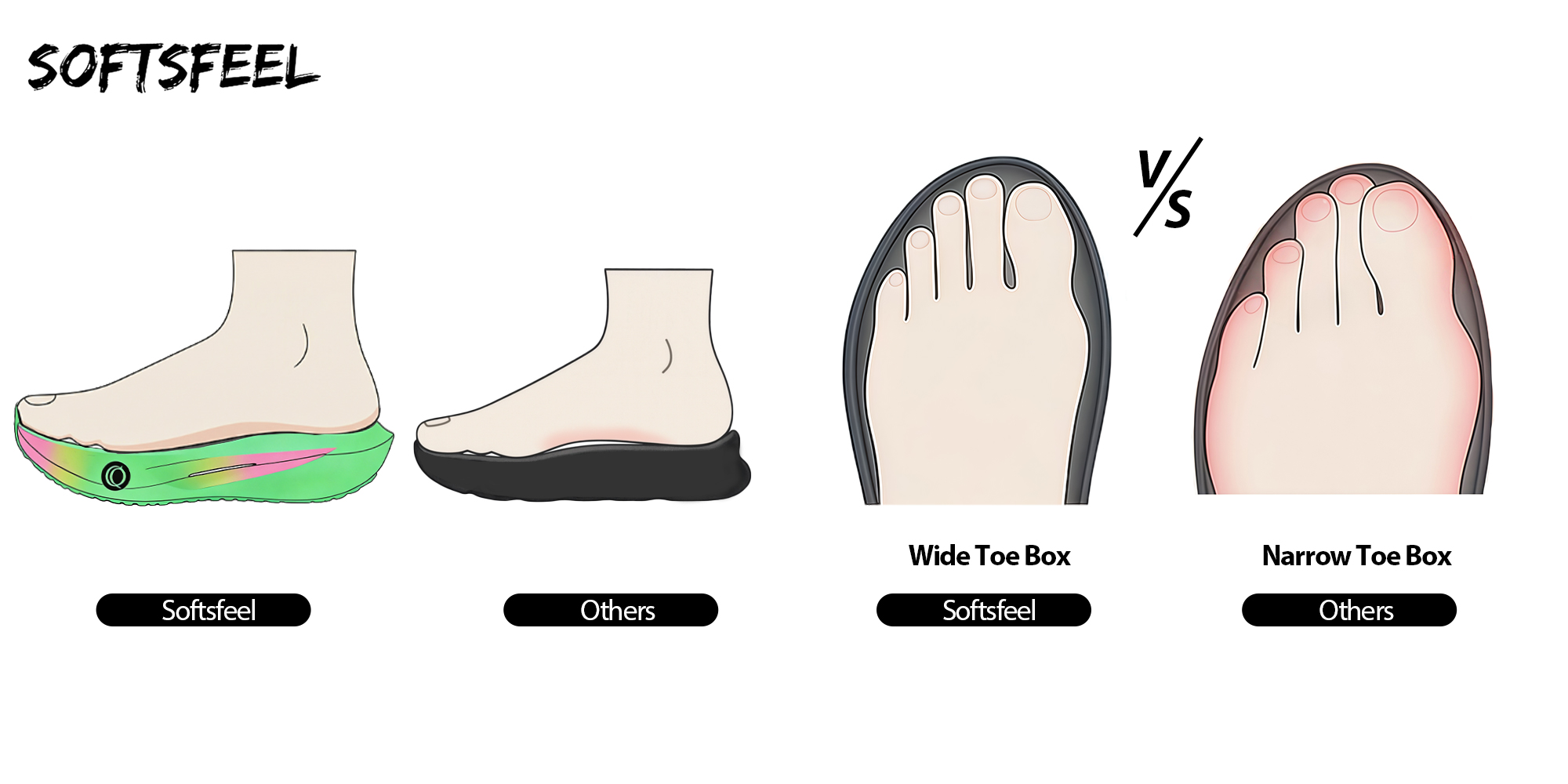 - Wide-Foot Friendly: Spacious toe box protects sensitive toes; say goodbye to cramped feet.
